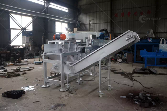 The production line's front end incorporates a battery casing cutting system capable of rapidly and precisely severing plastic casings while ensuring complete separation of internal components. A dedicated acid collection platform within the cutting zone centralises electrolyte recovery and storage, preventing leakage and contamination. The main structure is fabricated from 304 stainless steel, combining high strength with superior corrosion resistance. This design ensures reliable operation in prolonged acidic environments, significantly extending equipment lifespan.